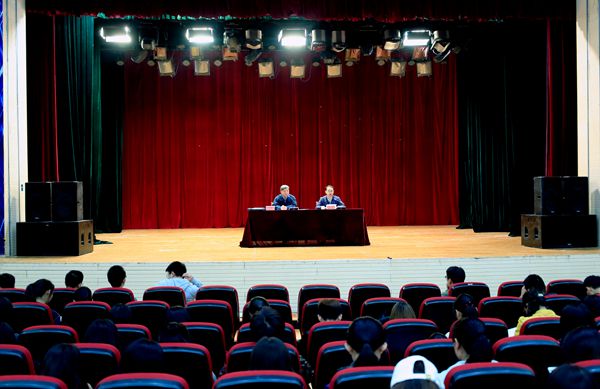 11月15日下午,校党委书记陈小虎在大学生活动中心为我校青年学子作党的十九大精神学习辅导报告,这是我校党的十九大精神宣讲系列活动中的第一场宣讲报告。全校学生党员、入党积极分子、学生干部以及部分学生代表800余人聆听了陈书记的报告,报告会由校党委副书记单晓峰主持。