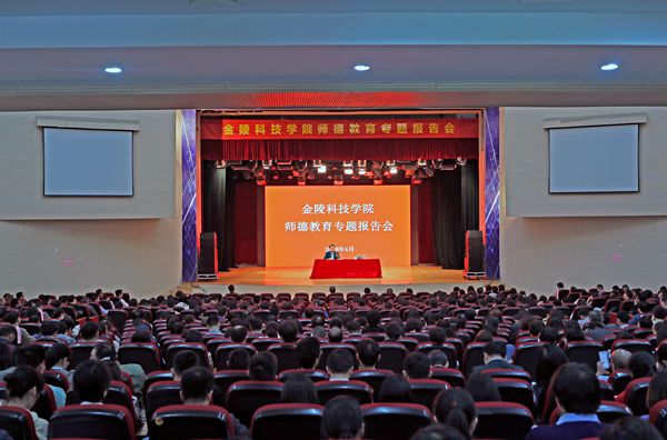 4月25日,我校在江宁校区大学生活动中心剧场举行师德教育专题报告会,南京师范大学汤国安教授应邀作主题报告,校党委书记陈小虎讲话,校党委副书记、校长聂影主持了报告会,全体教职工1100余人聆听了报告。